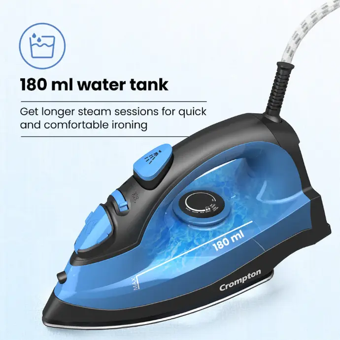 Crompton Fabrimagic Neo 1200 Watts Steam Iron with 180 ml water tank, Blue and Black