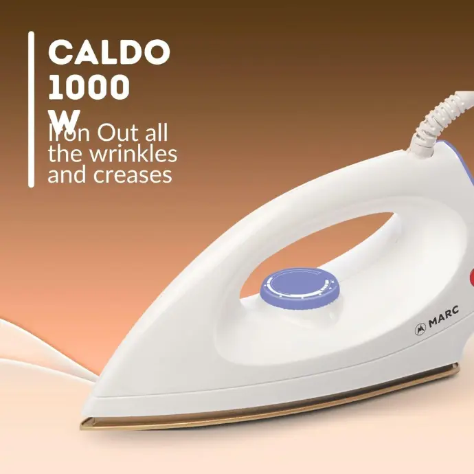 MARC Calido 1000 Watt Dry Iron for Clothes | Power For Faster Ironing | Non Stick Soleplate Coating | 5 level Safety